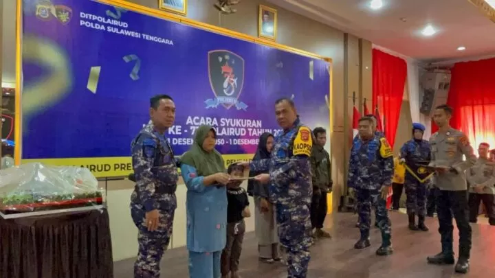 Syukuran dalam rangka memperingati HUT Polairud Baharkam Polri tingkat Polda Sultra di laksanakan secara sederhana dan berlangsung secara kekeluargaan karena dihadiri keluarga dari 4 (Empat) terduga pelaku bom ikan yang jadi korban penembakan oknum petugas Polairud Polda Sultra, di Pulau Cempedak, Kecamatan Laonti, Kabupaten Konawe Selatan (Konsel).